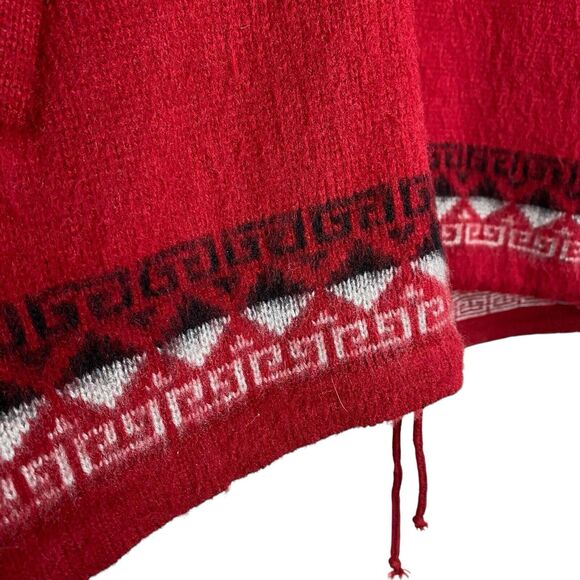 Vintage Earth Ragz Sweater Jacket Medium Wool Blend Hooded Moose Geometric Tree Red Zip Hippie