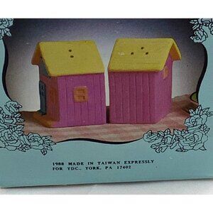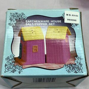 Vtg Earthenware House Salt Pepper Shakers Neon Bright Colors Unused In Box 1988