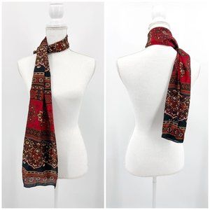 Vtg Echo Two Silk Scarves Red Gray Leaf Medallion