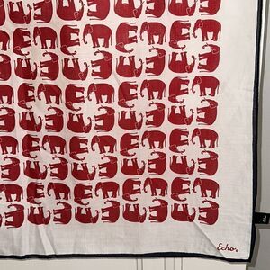 Vintage Echo large white thin cotton square scarf with red elephants & blue border