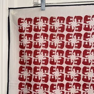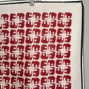 Vtg Echo large white thin cotton square scarf with red elephants & blue border