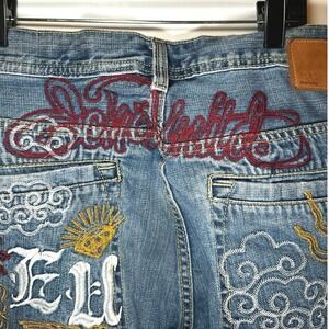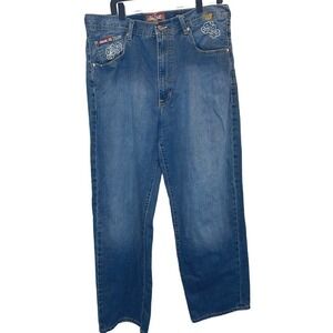 Vtg Ecko Unltd Jeans Mens 38 Embroidered Dragon Hip Hop Baggy Skater Grunge Y2K