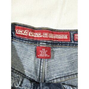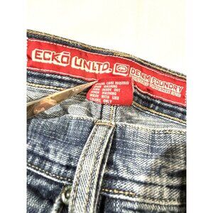 Vtg Ecko Unltd Jeans Sz. 32 Med. Blue Wash Denim Patch Y2K Baggy Fit Red Hook