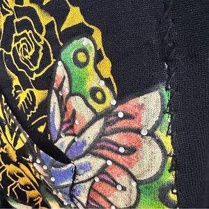 Vtg Ed Hardy By Christian Audigier Hooded Mini Dress SZ Large Knit Butterfly EUC