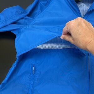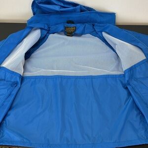 Vtg Eddie Bauer Blue Full Zip Nylon Windbreaker Hooded Jacket Packable Vented L