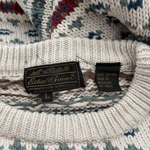 Vtg Eddie Bauer Chunky Knit Sweater Men Large Fair Isle Nordic Grandpa 90s Cosby