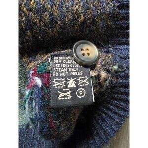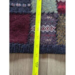 Vtg Eddie Bauer Deer Bay Blue Wool Multi-Color Patchwork Cardigan Sweater M