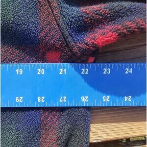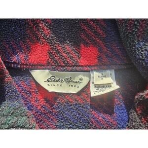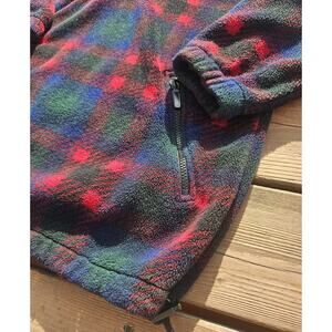 Vtg Eddie Bauer Fleece 1/4 Zip Pullover Women Small S Blue Red Plaid Long Sleeve