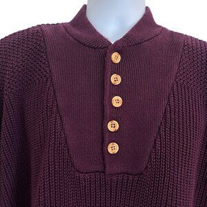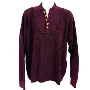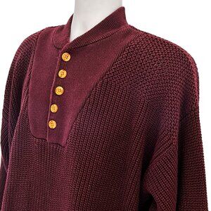 Vtg Eddie Bauer Men XL Henley Pullover Knit Sweater Burgundy Fisherman Outdoor