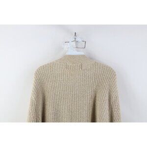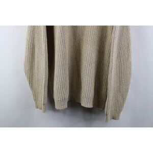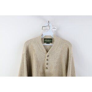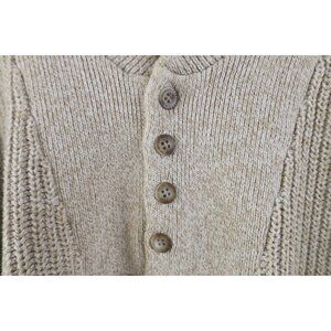Vtg Eddie Bauer Mens XL Blank Cotton Ribbed Knit Henley Sweater Oatmeal Brown