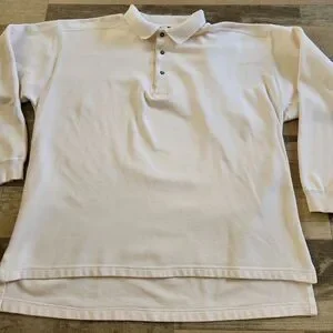 Vtg Eddie Bauer Pique Knit Polo Sweatshirt Cream 90s Gorpcore Heritage XL