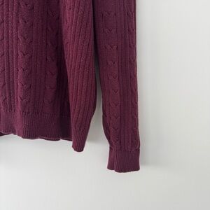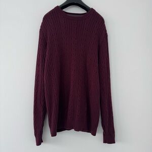 Vtg Eddie Bauer Plum Cable Knit Sweater Men’s XLT Tall XL Burgundy 100% Cotton