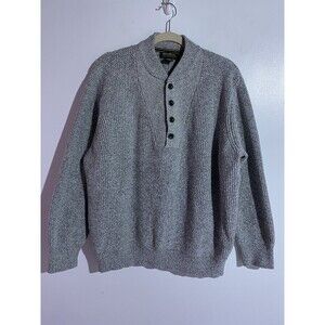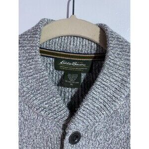 Vtg Eddie Bauer Sweater Mens XL Gray Chunky Shawl Collar Fisherman Cabincore