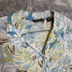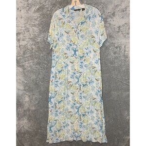 Vtg Eddie Bauer Women Tropical Hawaiian Pastel Floral Maxi Shirt Dress 1X Plus