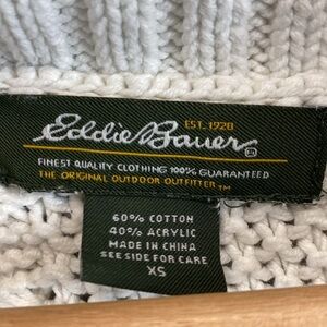 Vtg Eddie Bauer cable knit sweater XS fisherman preppy rolled collar nautical