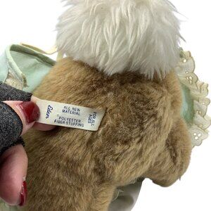 This Eden Beatrix Potter plush embodies charming craftsmanship, featuring a delightful bunny dressed in a blue dress and holding a woven basket. Its soft polyester fiber stuffing ensures a cuddly experience, while the detailed attire adds a touch of elegance. Suitable for all ages and made in Haiti.