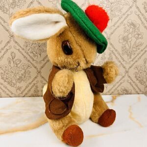 Vtg Eden Benjamin Bunny Plush 12" Green Tam O Shanter Red Pom Pom Beatrix Potter