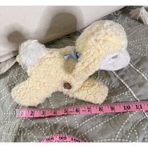 This vintage plush from Eden Toys is a charming musical lamb, complete with a wind-up feature that plays "Mary Had a Little Lamb." Its soft, yellow exterior and blue ribbon detail add a touch of nostalgia, making it a delightful collectible or gift.