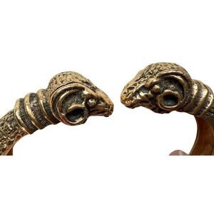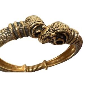Vtg Egyptian Revival Gold Tone Rams Head Bypass Spring Hinge Bangle Bracelet