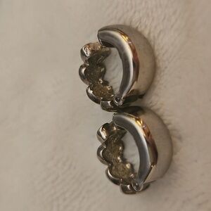 Vtg Elegant Blue Crystal Hearts Hoop Huggie Earrings