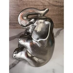 Vtg Elephant Bookend Doorstop Paperweight MCM Silver Gold Trunk Up Elephant