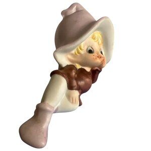 This delightful vintage '70s elf figurine, with its whimsical pose and enchanting details, adds a touch of charm to any collection or decor.