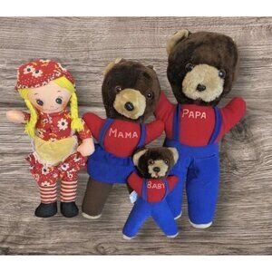 Vtg Elka Plush Goldilocks & 3 Bears Papa Mama Baby Stuffed Animals Toys Prize
