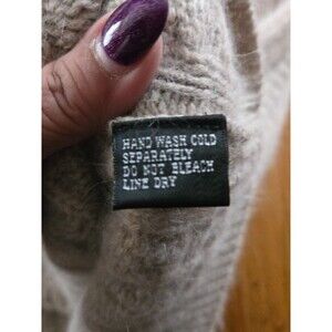 This vintage Ellen Tracy sweater dress is a must-have for any fashion-forward woman. The beautiful brown color and cable knit pattern make it a cozy and stylish choice for any occasion. The dress features a turtleneck neckline, long sleeves, and a heavyweight fabric that will keep you warm and comfortable in the colder months. The dress is made of a combination of lambswool and Angora materials, which gives it a soft and luxurious feel. The stretchy fabric and shoulder pads add a flattering touch to the dress, making it a perfect choice for a 90s themed outfit. This sweater dress is available in size medium and is suitable for regular size types.
