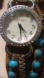Vtg Elly Preston Jewelry Silver/Turquoise Rhinestone Leather Double Loop Women's Watch