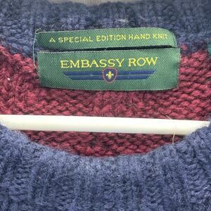 Vtg Embassy Row XL Blue Green Red Wool Sweater Color Block Cable Knit Crew Men's