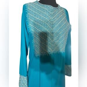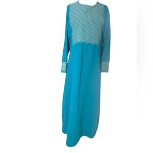 Vtg Embroidered Beaded Feminine Boho Modest Maxi Dress L Coachella Editorial