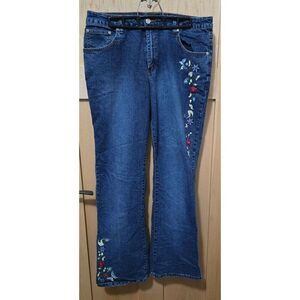 Vtg Embroidered Floral Blue Denim Jeans W Colorful Flowers Flower power fairycor