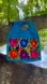 Blue with embroidered colorful flowers. Zip closure with top handle. Cotton, lined in cotton.