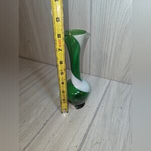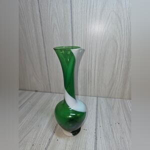 Vtg Emerald Green & White Swirl Glass Vase MCM Art Glass 8" Handcrafted Japan