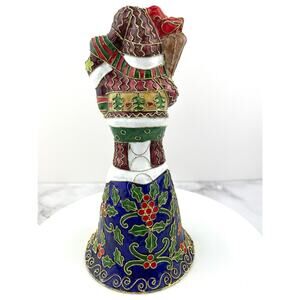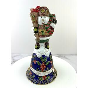 Vtg Enamel Cloisonné Bell Merry Xmas Snowman Large Gold Tone Holiday Decoration