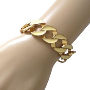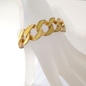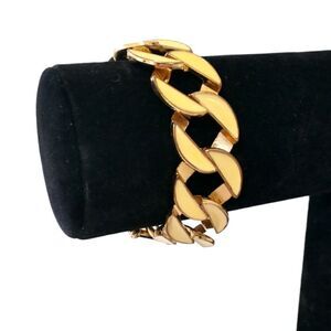 Vtg Enameled Bracelet Chunky Flat Chain Link Gold Tone Ivory Statement Classic.