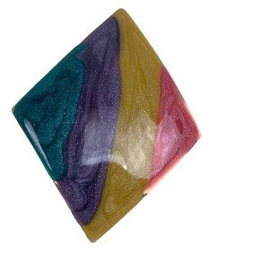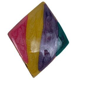 Vintage diamond shaped pierced post earrings. Sparkly color block enameling in blue, purple, yellow, & pink.