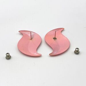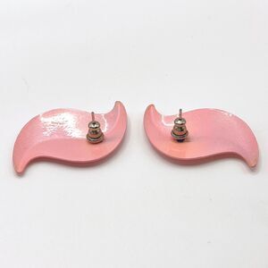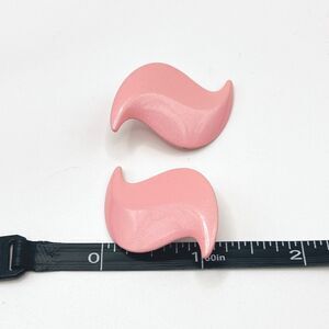 Vtg Enameled Pink Earrings Chunky Statement Leaf Wave Large Bold Post Pierced