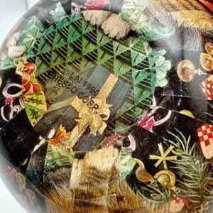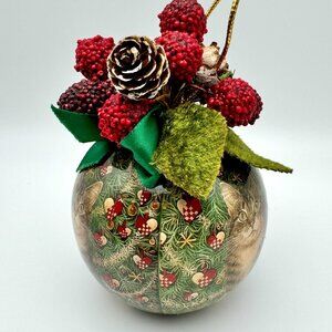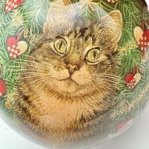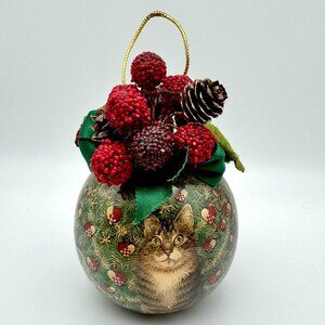 Vtg Enesco 90s Cat Ornament Paper Mache Christmas Holiday Decor Berries