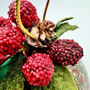 • Adorned with berries and pinecones