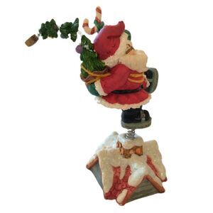 Vtg Enesco Wiggling Santa Up On The Roof Top Animated Springs Resin Glitter 1996