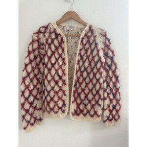 Pre-owned in overall great vintage condition. Cream knit base with pink brushed wool in 3D pattern.