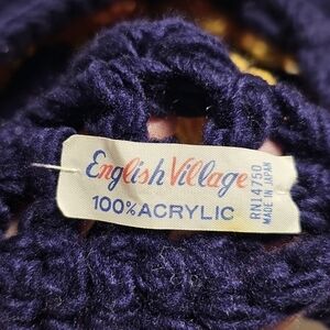 Vtg English Village Navy and Yellow Crochet Beret