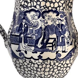 Vtg English William Adams Double Sided Blue & White Pottery Pitcher Oriental