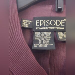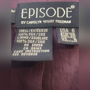 Vtg Episode 6 Black Rasberry Longsleeves 1 Button 100%SILK Lining 100% SILK Ribbed Knit Women's Blazer