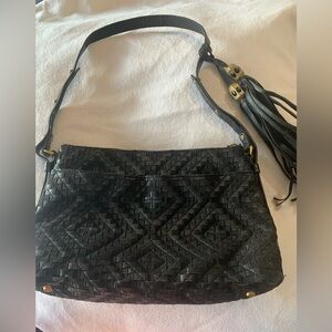 This elegant black woven shoulder bag is perfect for any occasion. Its intricate design adds a touch of sophistication to your outfit. Ideal for both casual and formal settings.