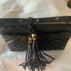 Vtg Eric Javitz NY Tote Designer Black Leather Woven Bag Adjustable Shoulder New