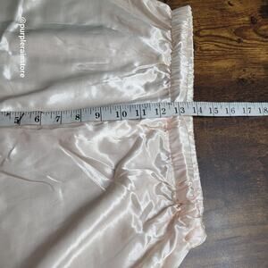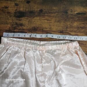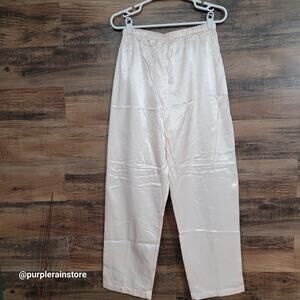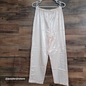 Vtg Ericka Taylor Satin PJ Pants M High Rise Pale Peach Stretch Waist Romantic