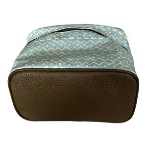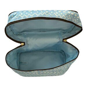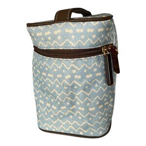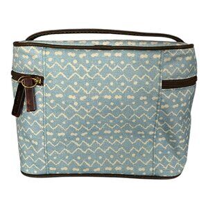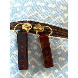 Vtg Estée Lauder Blue White Zigzag Cosmetic Travel Bag with Brown Trim