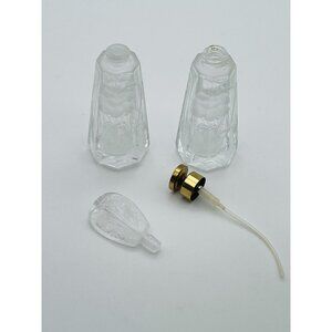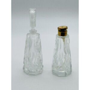 Vtg Etched Frosted Flower Perfume Bottles (2)With Brass Sprayer Top And Stopper